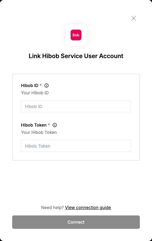• Password: Your Hibob Token Click “Connect” to complete the authentication.