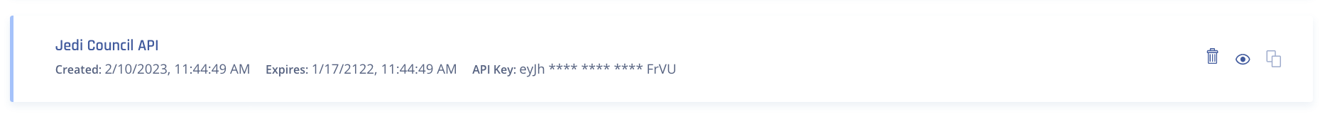 1. Once you have created your key, click the eye icon (👁) to reveal the Key.
